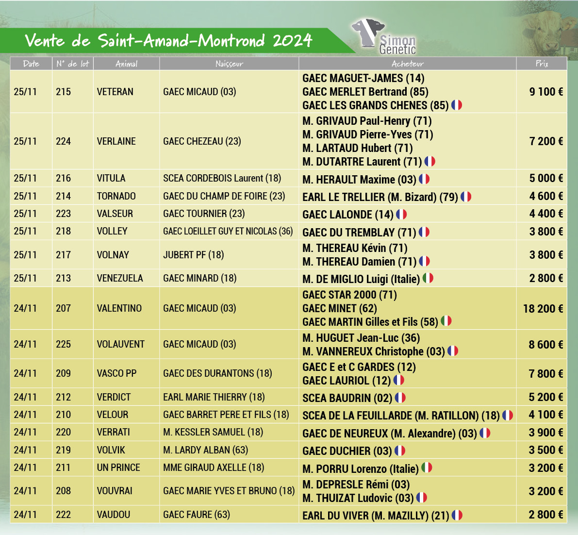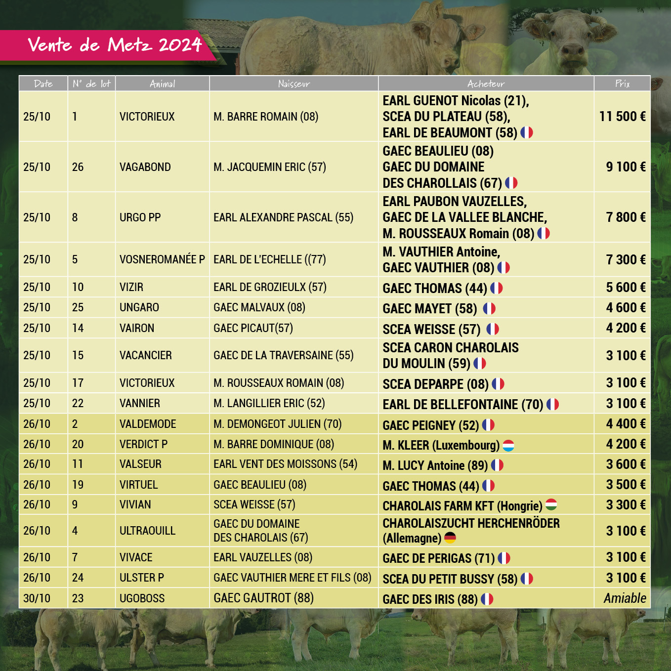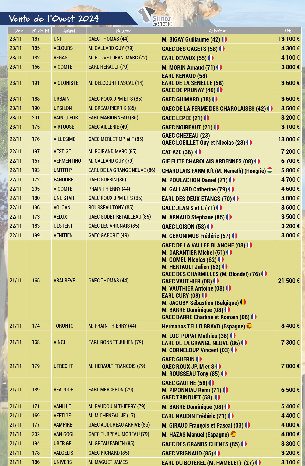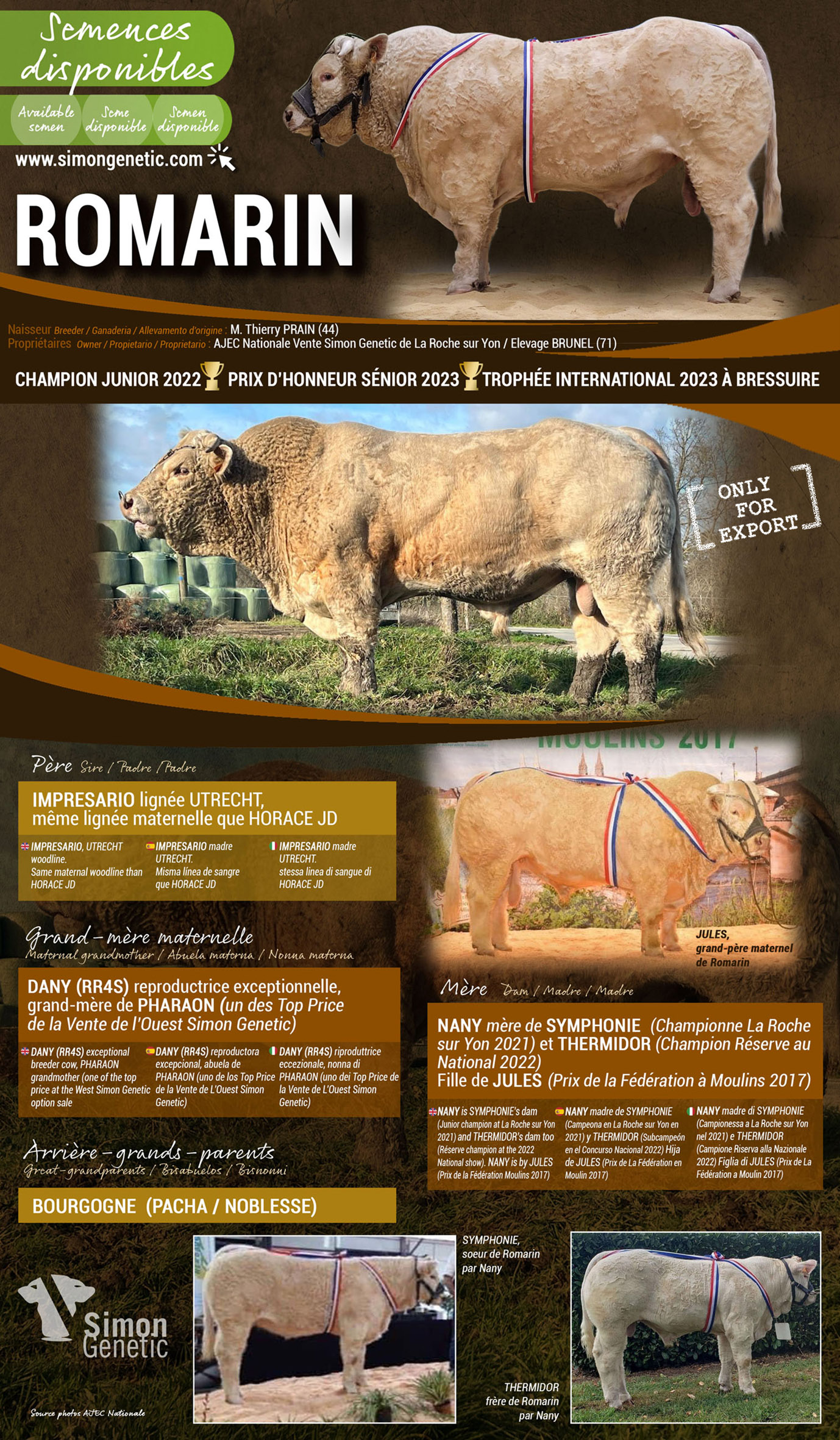 VRAI REVE – Semences disponibles à l’export – Semen available for export – Semen disponible para la exportación