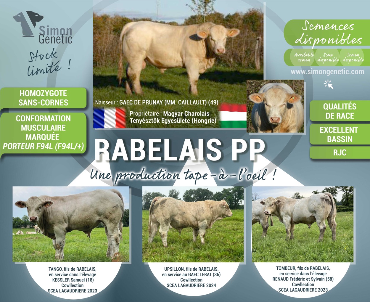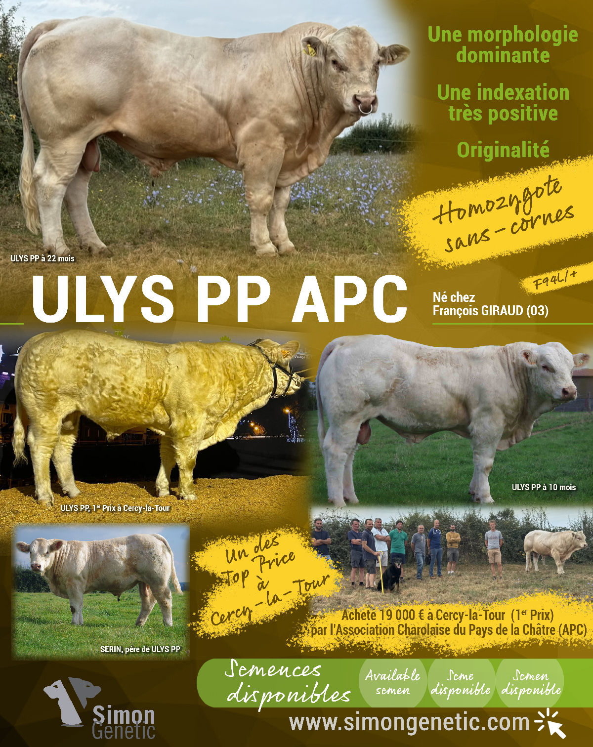 🇫🇷Semences disponibles ORIGAN utilisé sur génisses F94L/F94L🇨🇿