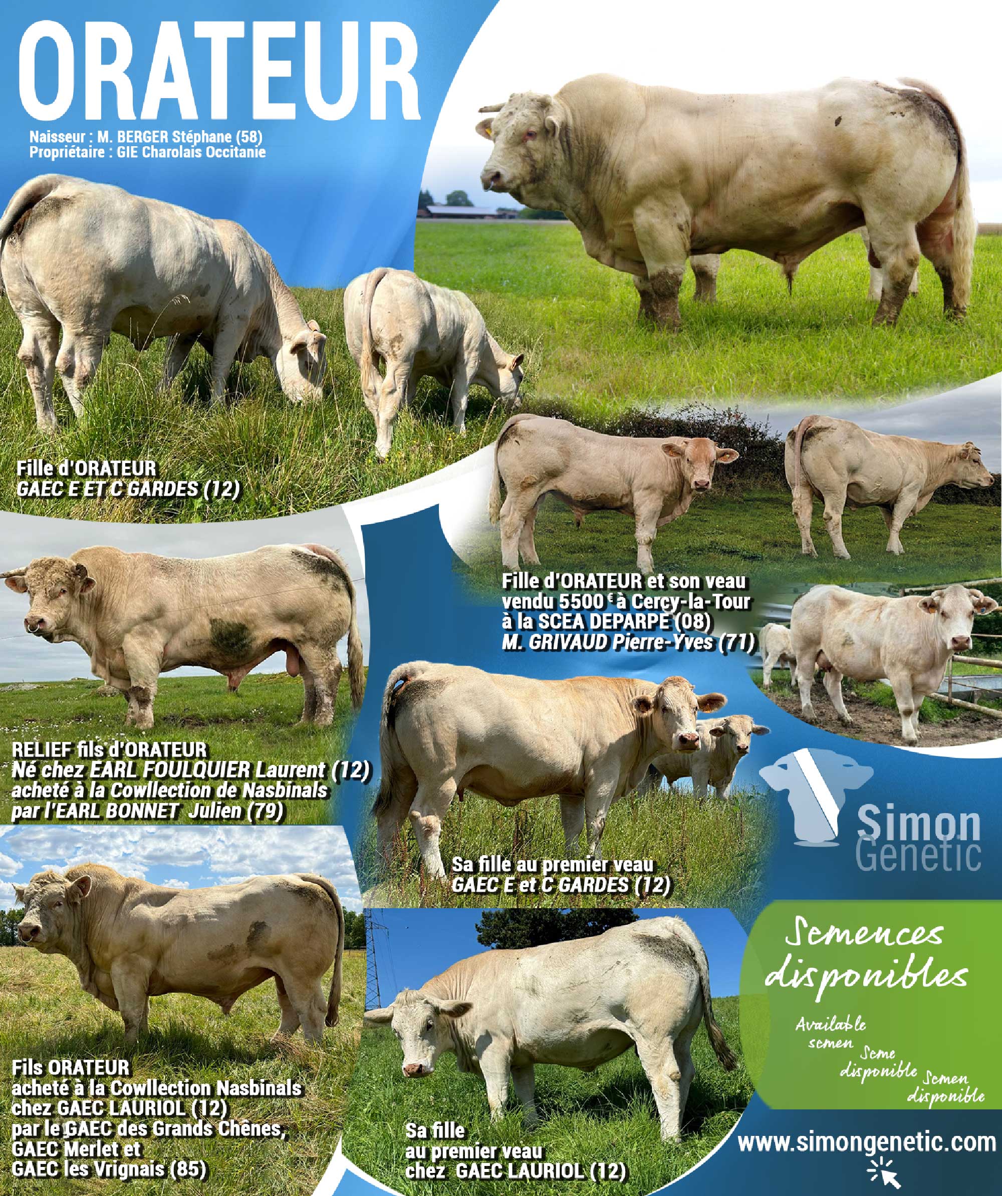 Une société novatrice spécialisée en commerce de semences, d’embryons, d’animaux vivants (toutes catégories) mais aussi en conseils sur la génétique charolaise et la promotion des meilleurs animaux de la race.