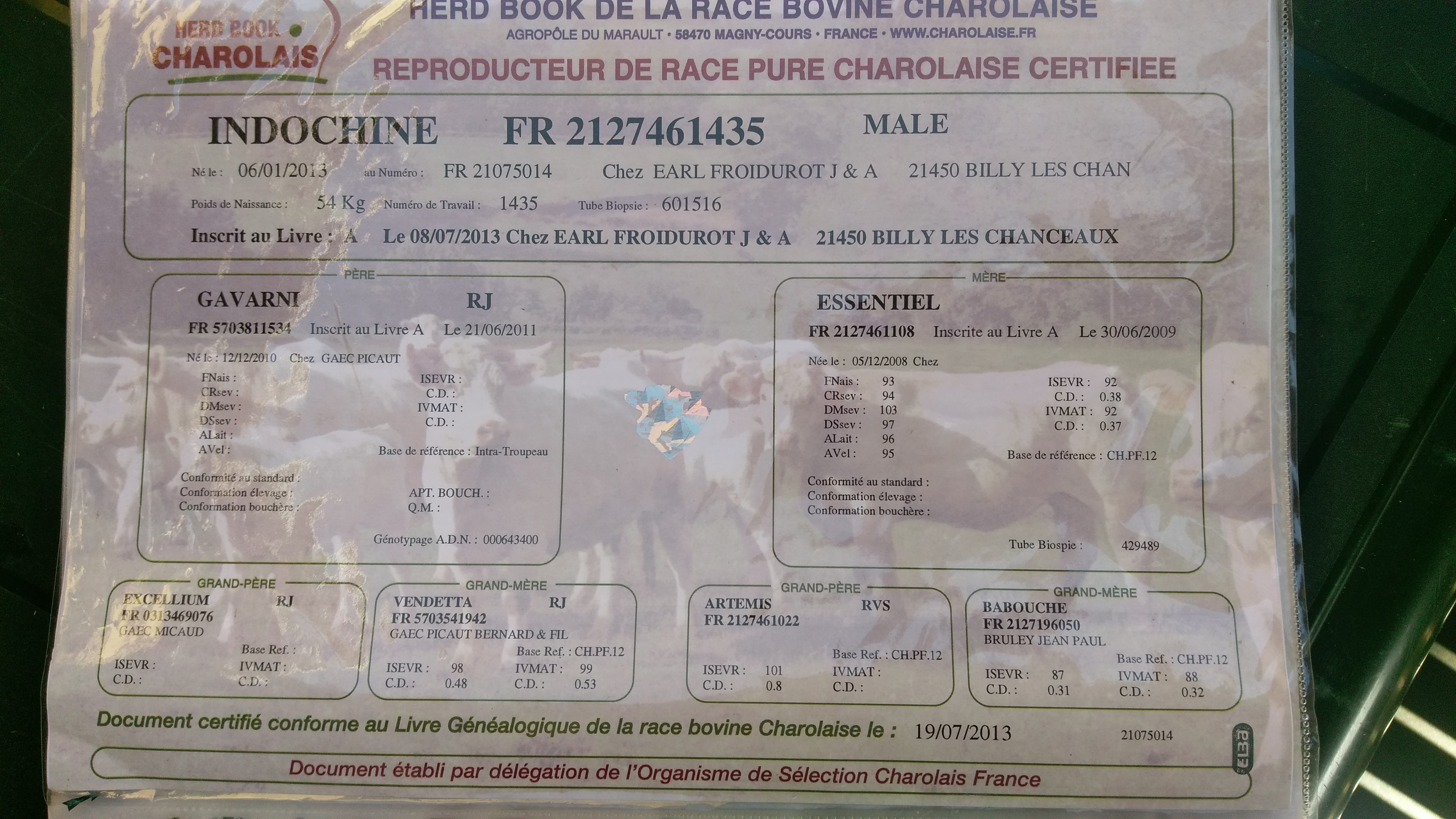 Herd of origin : L’HUILLIER JEAN-CLAUDE (Lidrezing – 57)