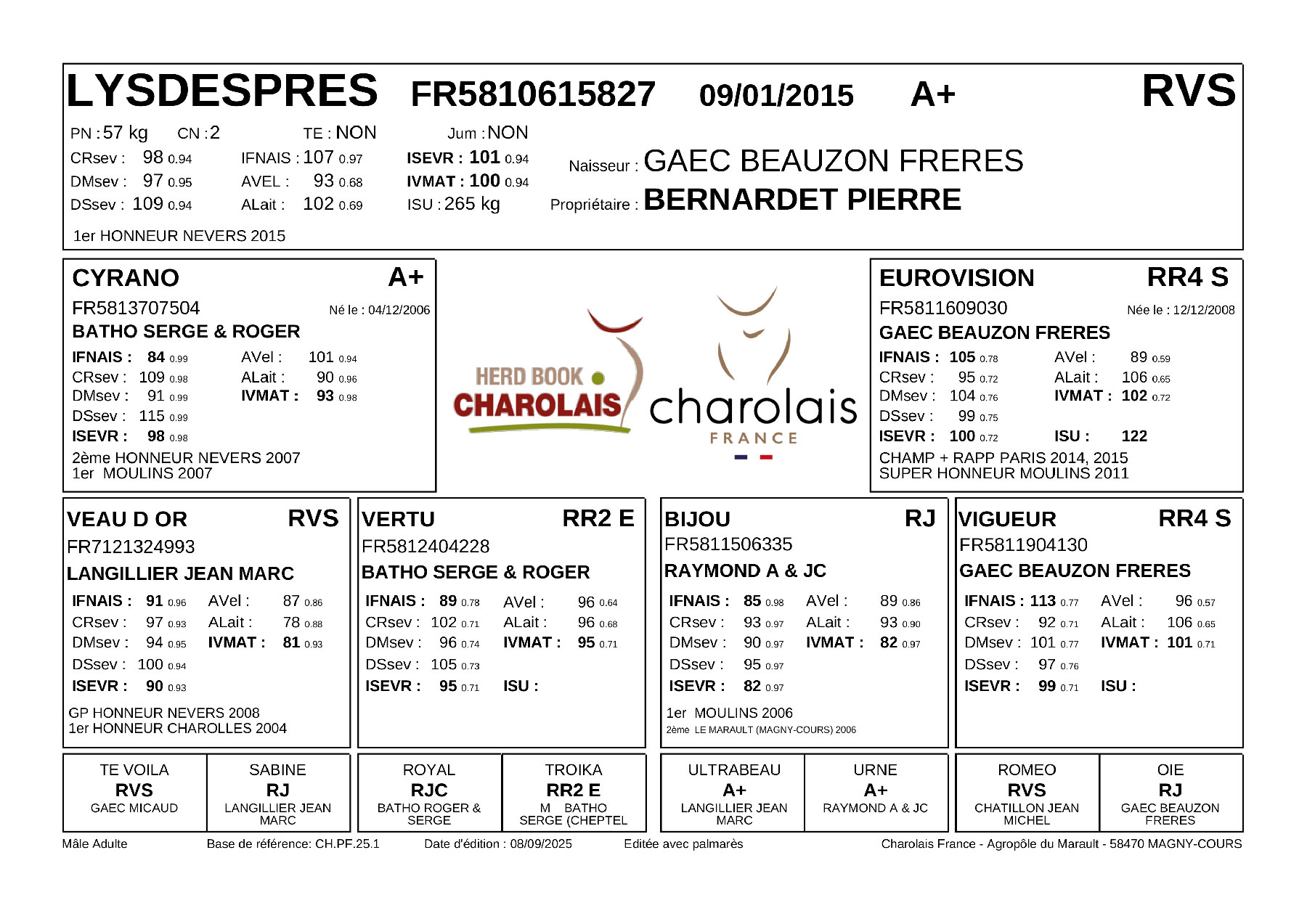 Il sera alors acquis en co-propriété par messieurs Paquet Laurent et Bernardet Pierre. On le retrouvera en pleine forme l’année suivante chez ces éleveurs nivernais…