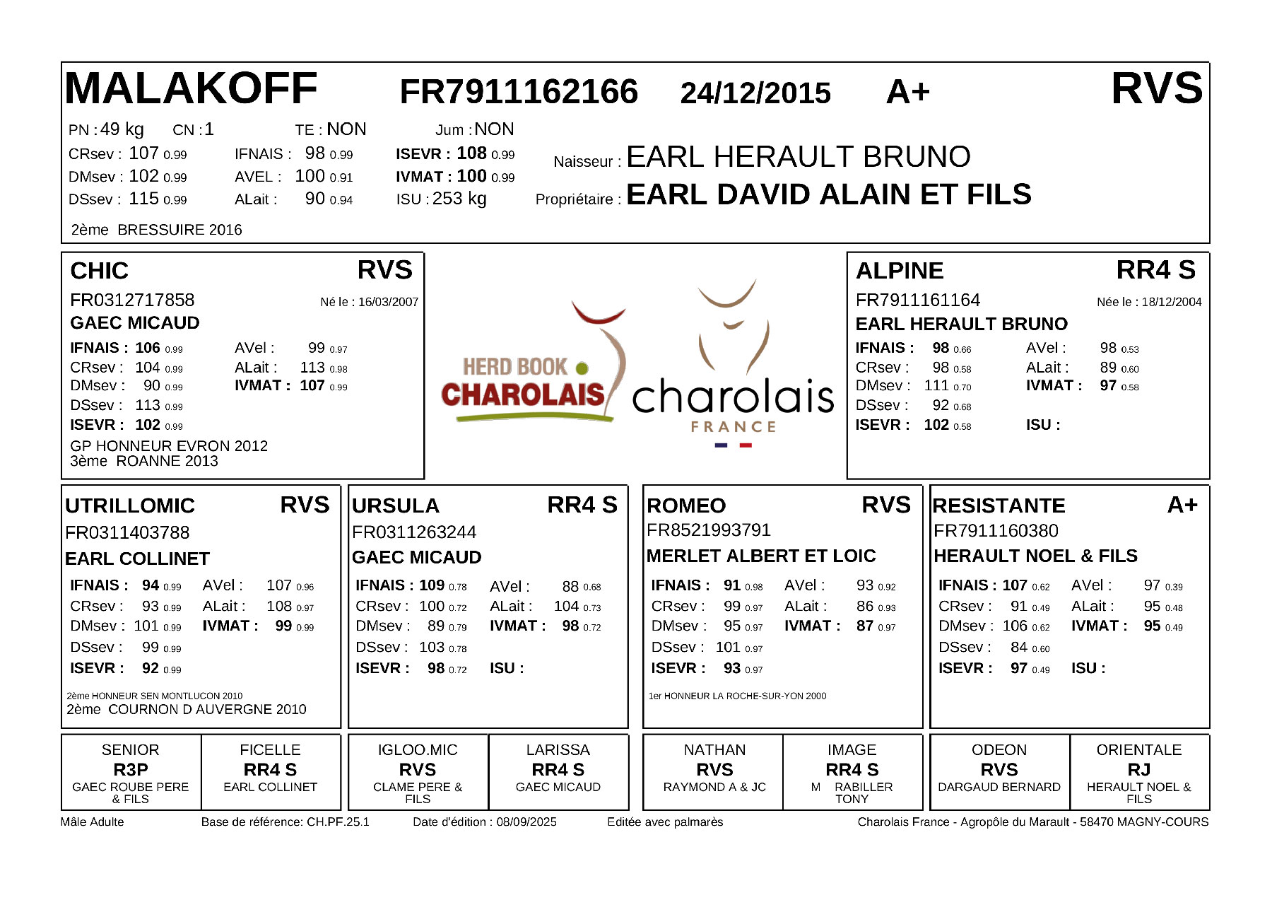 Son potentiel très supérieur lui vaudra dès sa deuxième pesée de décrocher un poids âge type de 448 kg ! Ce fils de CHIC semble extérioriser toutes les bases de développement de son père avec d’avantage de précocité notamment dans les masses musculaires juvéniles. Les surprises continueront par la suite en découvrant sa mère… et quelle mère ! Cette vache présente toute la puissance d’une grande génitrice avec beaucoup de race, des fondamentaux bien dessinés et une très belle silhouette.