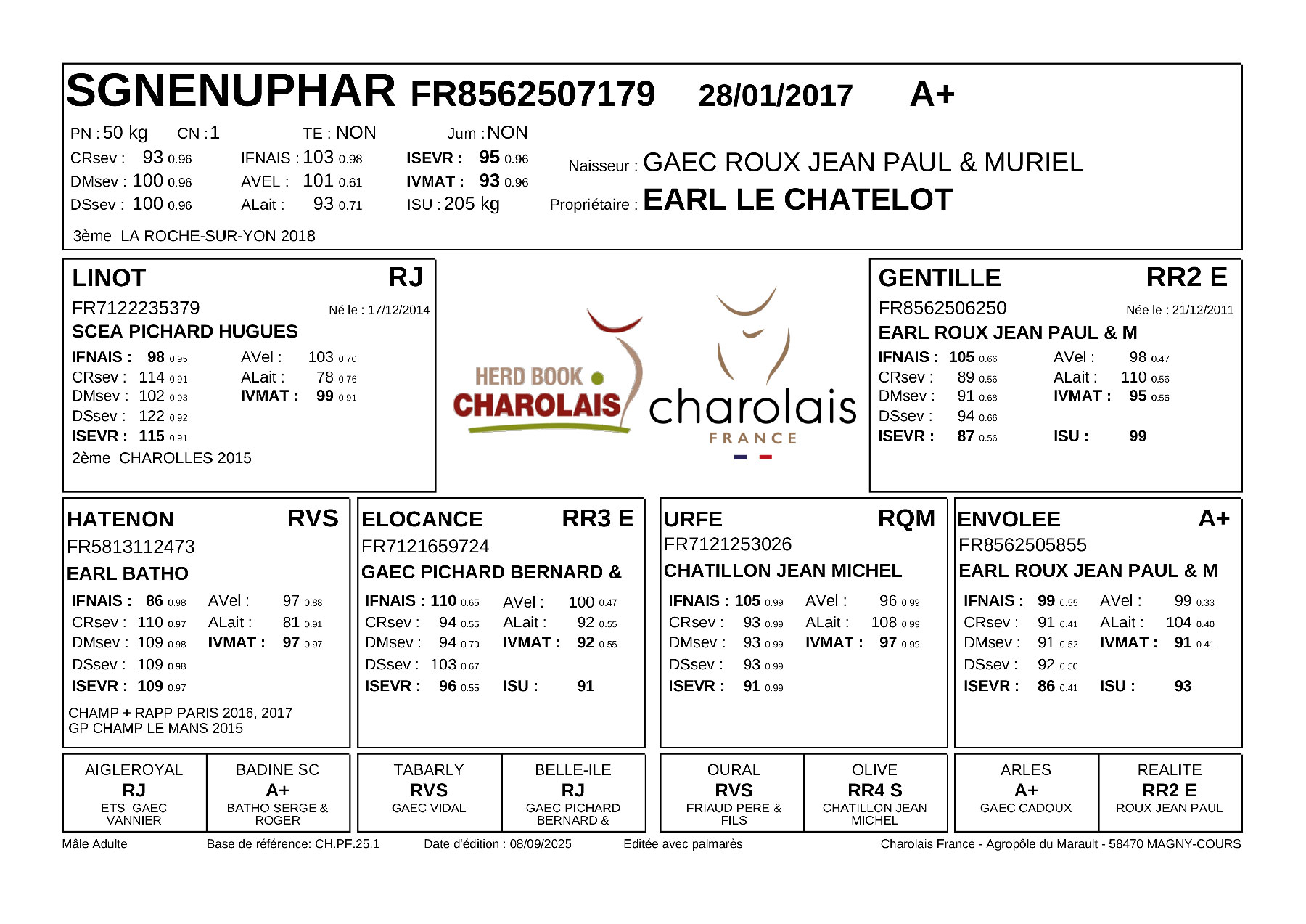 NENUPHAR est un taureau de grande envergure qui présente un dessus extraordinaire avec une très belle prise d’épaule. Sa longueur, son grain de viande et sa correction font de lui un spécimen particulièrement remarquable morphologiquement. Du côté de ses origines on retrouve LINOT, un père qui a laissé une très belle production dans plusieurs élevages vendéen avec beaucoup de potentiel de croissance et de gros bassins.