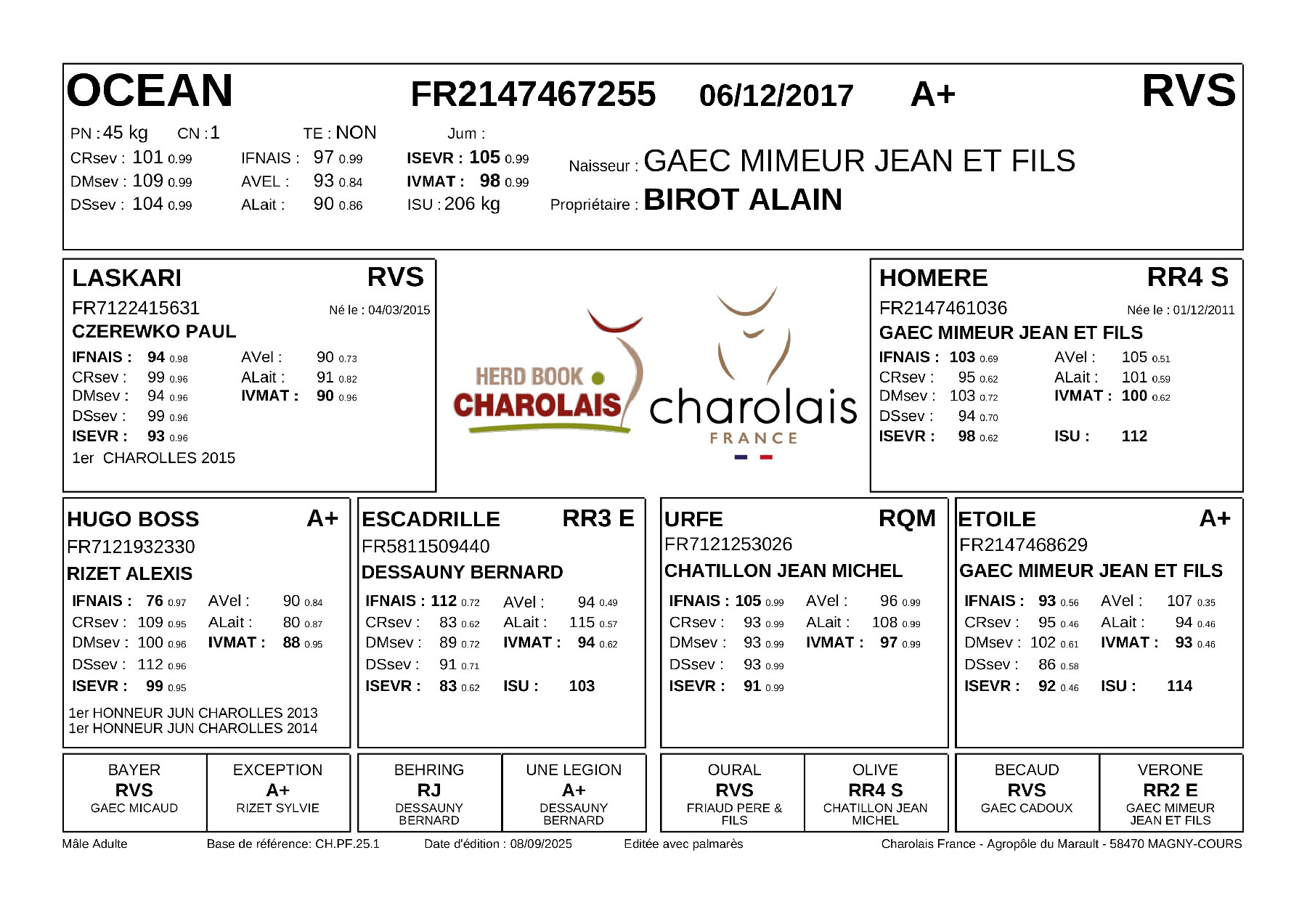C’est ensuite que nous avons pu suivre son évolution fulgurante à la Station d’Evaluation de Jalogny en Saône-et-Loire avec des croissances remarquables, une morphologie parfaitement équilibrée pleine d’épaisseur et toujours beaucoup de classe et d’espèce…