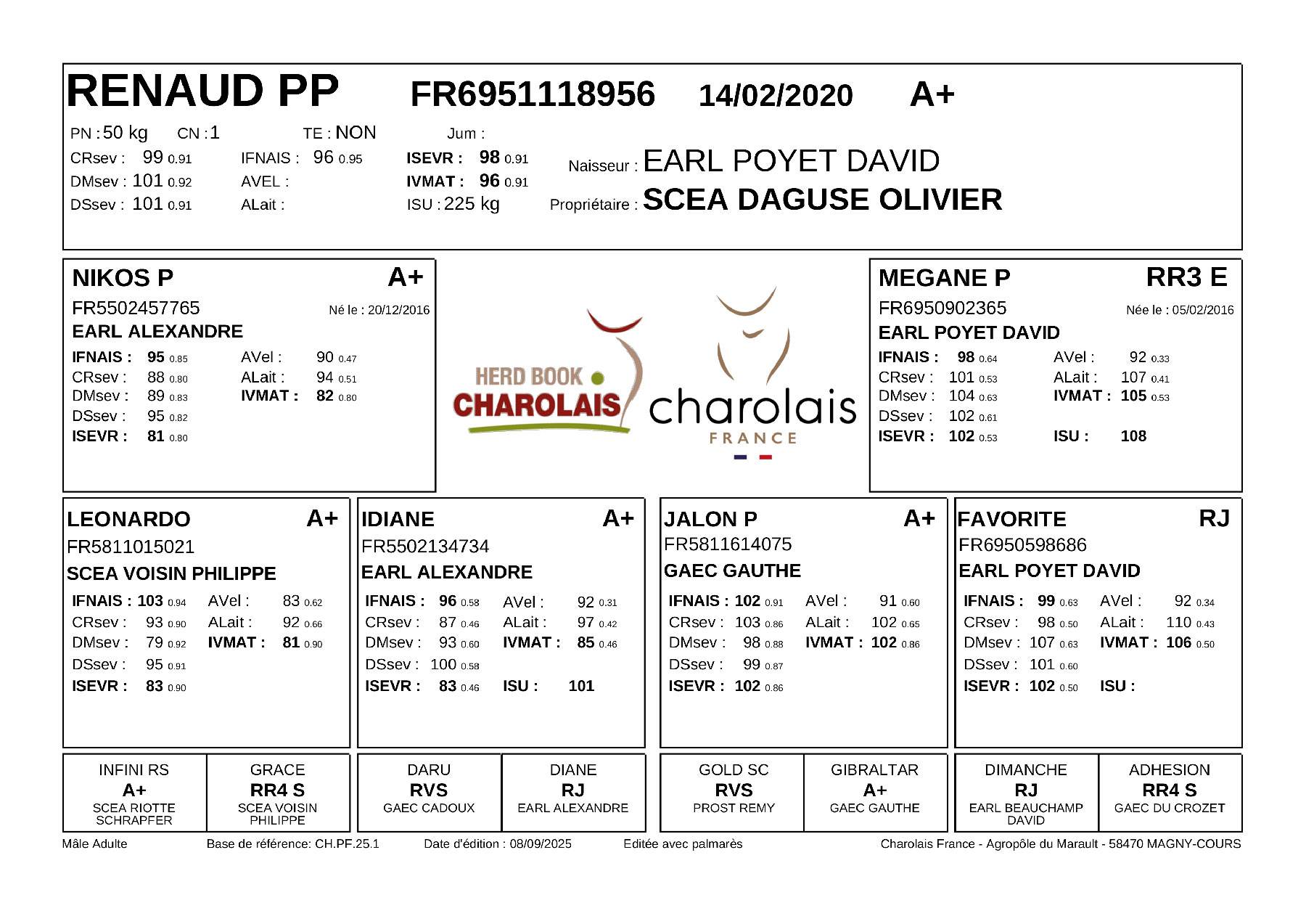 RENAUD PP a été repéré très tôt dans le très bon élevage de David Poyet dans le Rhône, cheptel sans-cornes mondialement reconnu à ce jour. Découvrez ci-dessous les traits de ce veau homozygote sans-cornes qui nous a tout de suite beaucoup plus et qui possède un pédigrée très original. De beaux points de force notamment dans sa prise d’épaule, ses qualités de race et sa puissance.