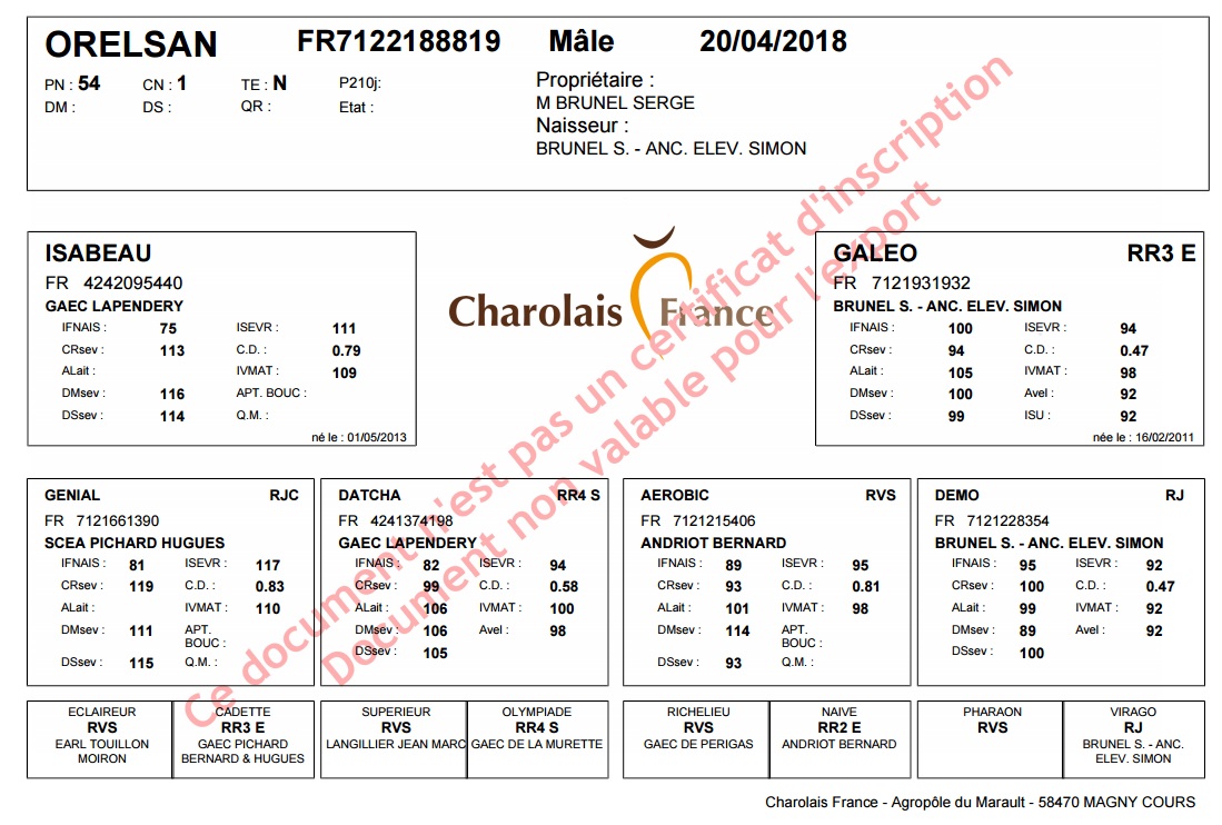 Herd of origin : BRUNEL SERGE (ISSY L’EVEQUE- 71)