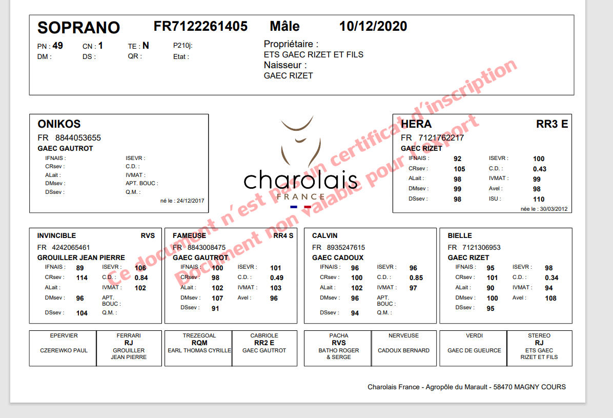 VENDU au GAEC MARIE Yves et Bruno, EARL MARIE Thierry (18 – France) et GAEC FROIDUROT Vincent et Geoffrey (21 – France)
