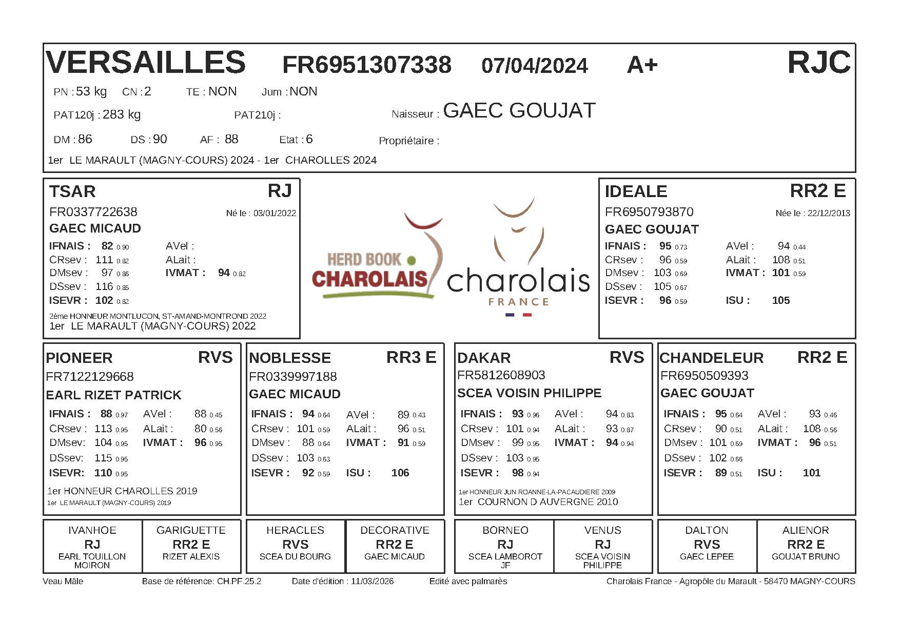 Puis AIGLEROYAL qui a rejoint l’élevage CHATILLON Fabienne, Jean-Michel et Marius (71).
