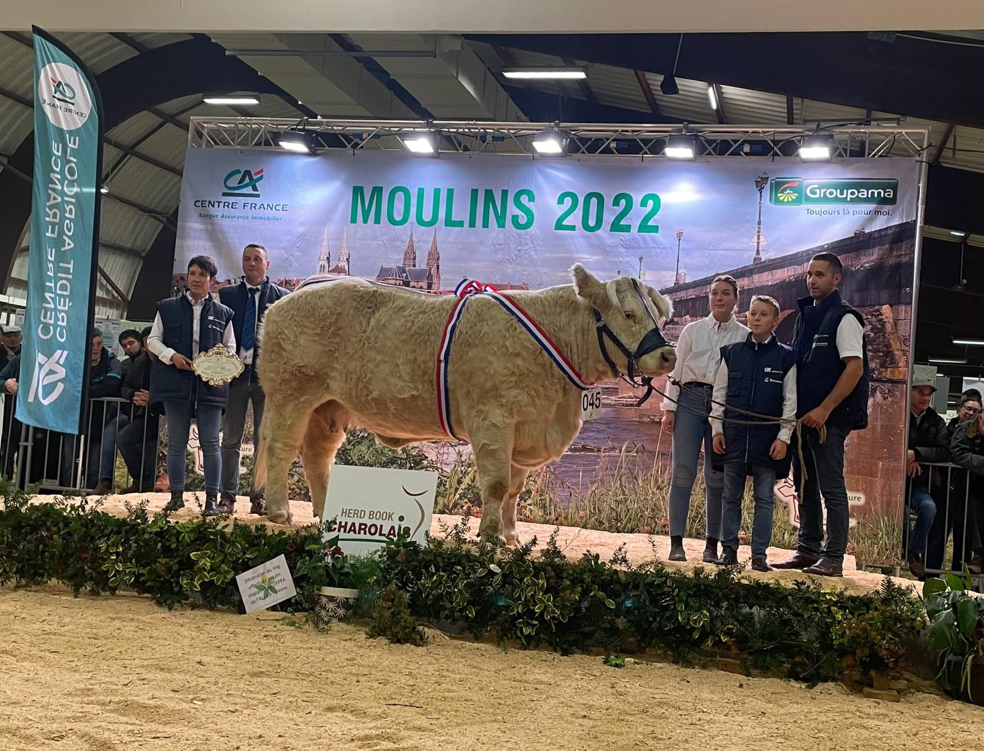 RABIOLO avait été acquis lors du Salon International de l’Agriculture à Paris, alors âgés de plusieurs semaines, sous le pis de sa mère exceptionnelle de l’élevage Clame-Andriot : NOCE D’OR ! Clin d’œil à ses naisseurs pour leur travail de mise en valeur exceptionnelle de la race Charolaise et un grand merci de nous faire partager ces beaux clichés de la famille de RABIOLO. NOCE D’OR a décroché le Super Prix d’Honneur Veaux Femelles à Moulins, plusieurs Prix de Championnat au cours de sa carrière mais aussi le Super Prix d’Honneur Femelles Adultes à Moulins.